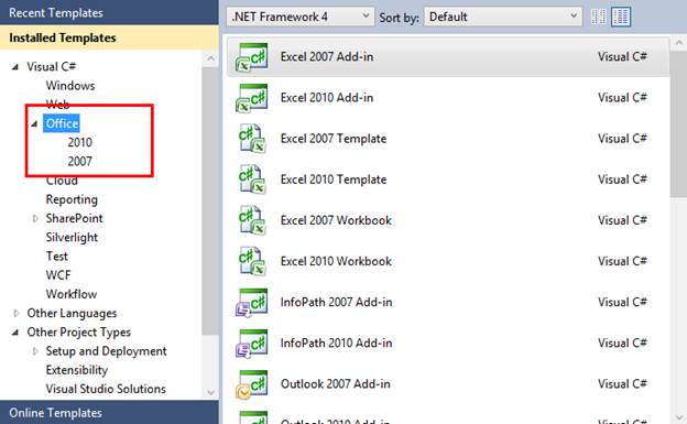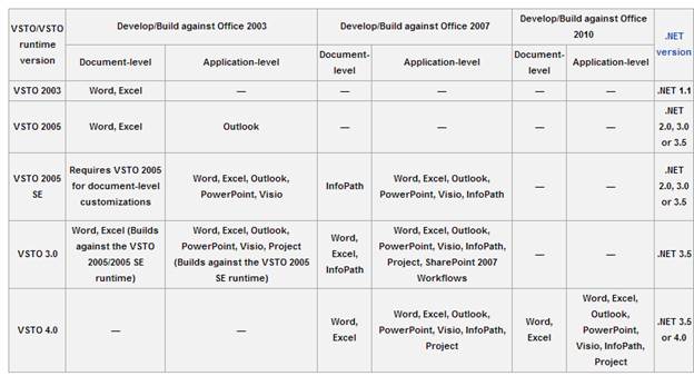 - 如果开发Office 2007以上的Add-in使用(VS2010或者VS2012 )+ .NET 4.0 + VSTO 4.0
